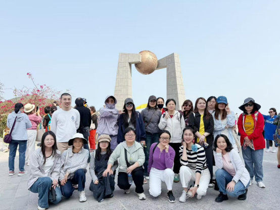 On the first day, the group ascended Piaoran Pavilion in the Queshi Scenic Area. Perched atop Jiguan Peak, this two-story, six-pillar pavilion is roofed with golden glazed tiles, serving as the iconic spot for “Gazing Afar from the Floating Pavilion”—one of the Eight Scenic Views of Shantou. Leaning against the railings, they overlooked the bustling inner bay with ships sailing freely and the convergence of three rivers flowing into the sea, feeling utterly ethereal and carefree.